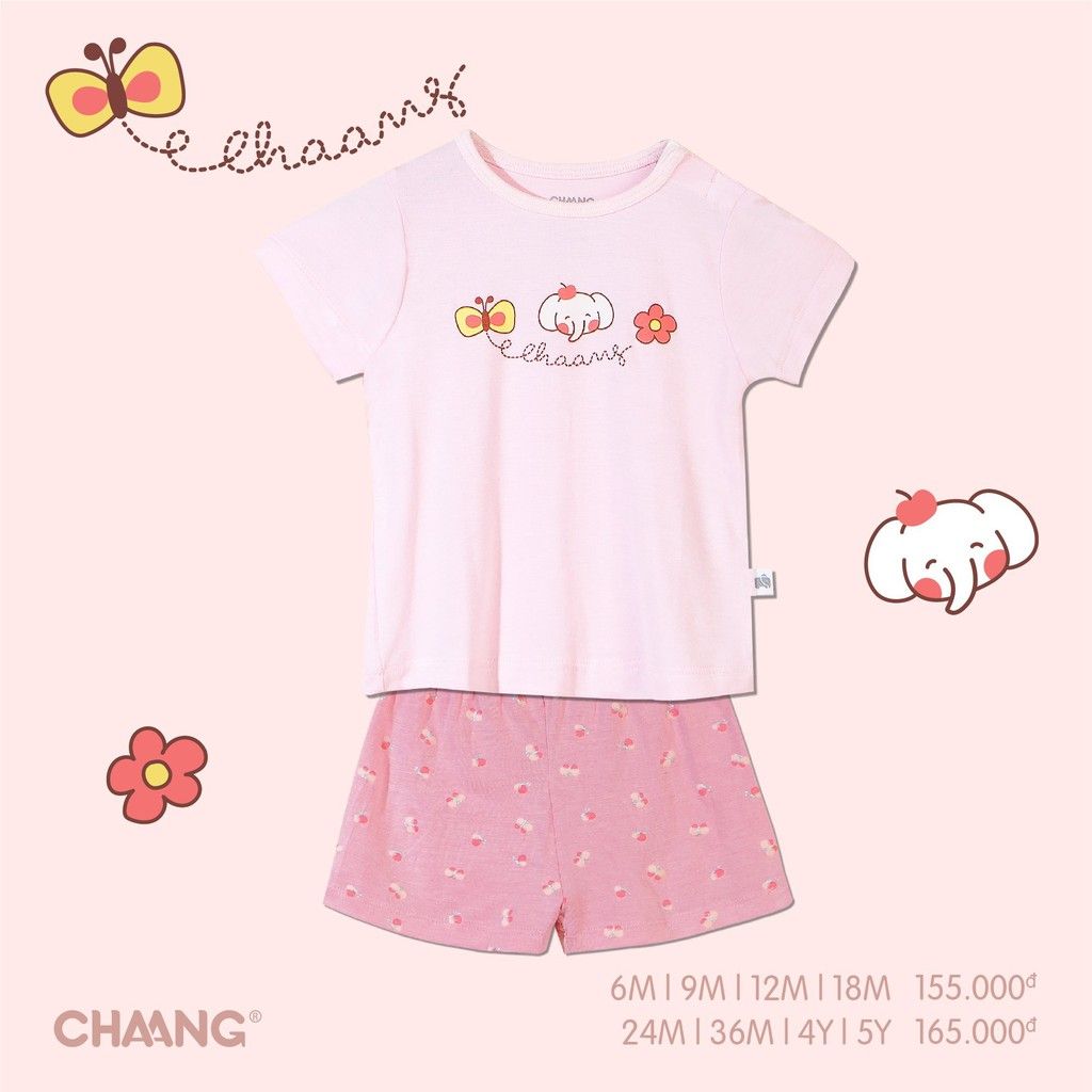 Bộ cộc cài vai summer màu hồng 18M Chaang